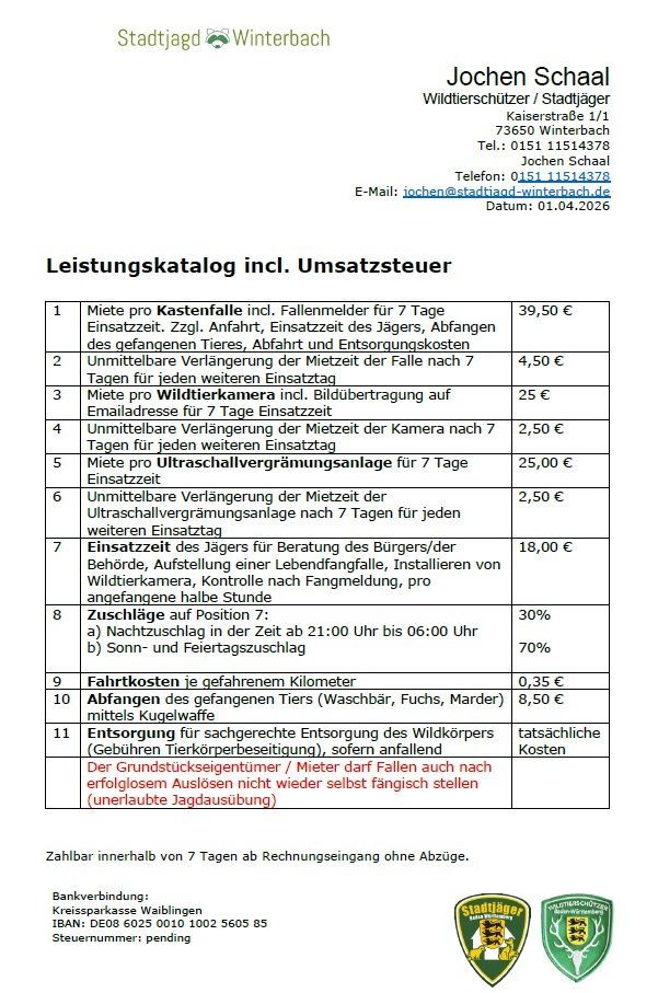 Die Jagdausübung im urbanen Bereich ist eine vom Landratsamt sowie den Gemeinden und Städten genehmigungspflichtige Tätigkeit (§13a JWMG).